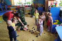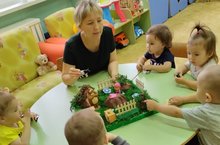 С воспитанниками второй группы раннего возраста №2 было организовано мероприятие "В гости к лесным жителям". Дети не только закрепили знания о лесных жителях, но и с удовольствием поиграли с ними. Встретив ёжика провели гимнастику "Волшебный шарик" с использованием массажного шарика СуДжок, с зайчиком поиграли в подвижную игру "Зайка серенький", мишке помогли собрать шишки и сыграли в малоподвижную игру "Мишка косолапый". Малыши не только познавательно, но и еще и интнресно провели время.