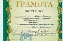 Саба муниципаль районы Шәмәрдән лицееның балалар Думасы активисты, 8 сыйныф укучысы Усманов Айдар Әтнә балалар видеофестивалендә лауреат дипломы белән бүләкләнде.