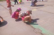 Затем в школьном дворе был проведен конкурс рисунков на асфальте под созвучным названием «Пусть всегда будет солнце».