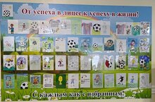 Учащиеся седьмых классов оформили стенд с фотографиями " Я люблю футбол ".
