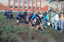 Пришкольный участок используется как основной источник для выращивания и заготовки натурального наглядного материала, без которого невозможно вести уроки сельскохозяйственного труда и биологии на уровне современных требований. А так же используется для выращивания овощей для школьной столовой. Кроме того учащиеся привлекаются к общественно - полезному труду. Посмотрите, как дружно и весело 8 г убирает картофель!