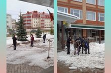 9 апреля прошел субботник по расчистке территории лицея от снега и льда. Лицейский экологический десант активно поработали,расчистили проход в лицей. Выражаем им благодарность от имени учителей,учеников и родителей!