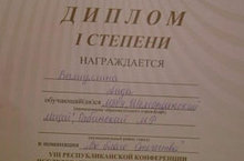Ученица 8в класса Валиуллина Аида приняла участие в VIII Республиканской конференции исследовательских краеведческих работ "Жить, помня о корнях своих..." и была награждена Дипломом 1 степени.