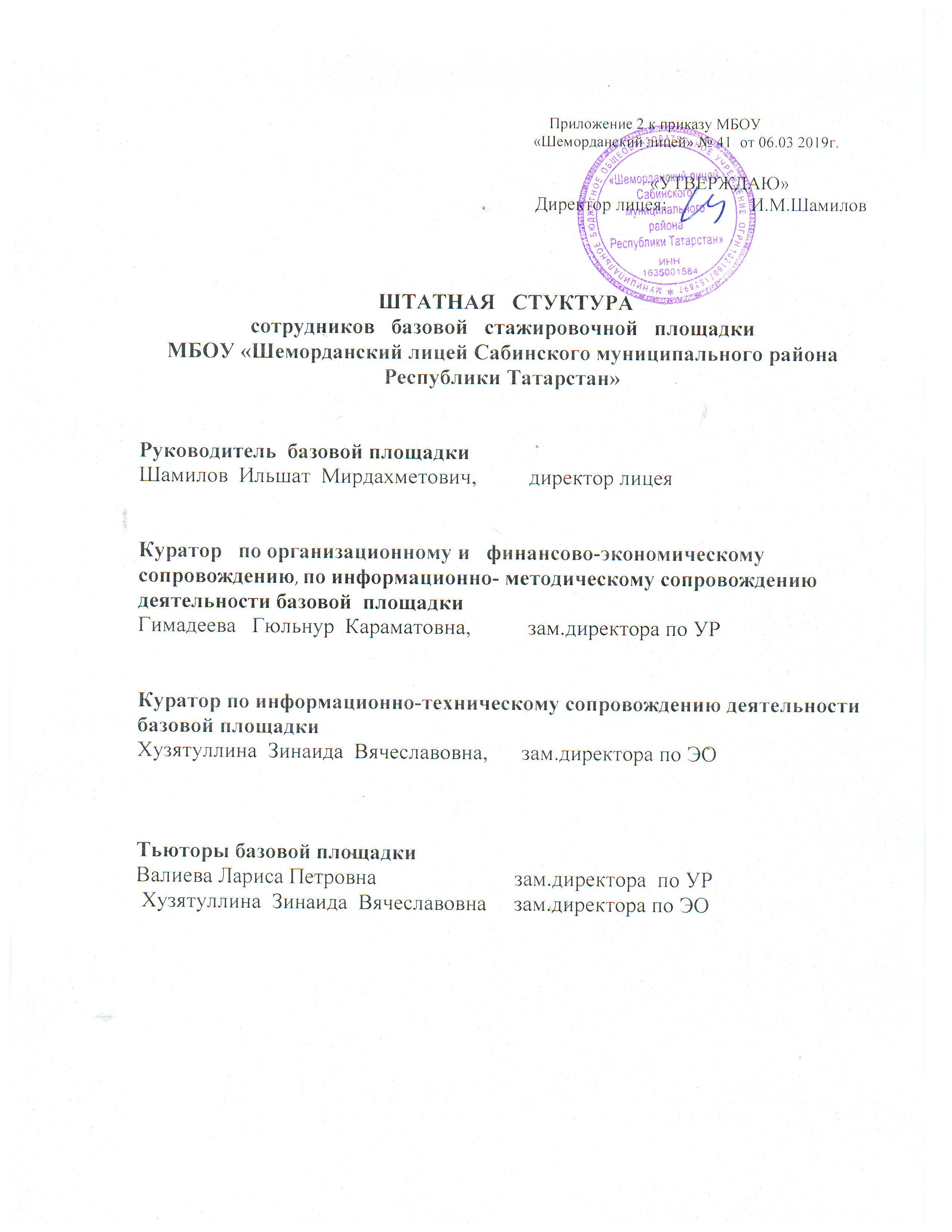 Штатная структура сотрудников базовой площадки (Приложение 2)