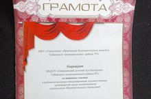 "1 июнь-балаларны яклау көне" уңаеннан, район күләмендә үткәрелгән әкият сәхнәләштерү конкурсында актив катнашкан өчен, бакчабызны грамота белән бүлкләделәр.