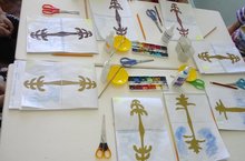 "Әбиемнең серле сандыгы". 25.02.2015 Бу атна эшчәнлегебезне балаларны татар халкының милли киемнәре һәм аларның бизәлеше белән таныштыруны дәвам итүгә багышладык. Бүген иҗади сәнгать-әвәләү шөгылендә традицион булмаган пластинография ысулы белән хатын -кызлар аяк киемен бизәдек.