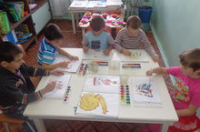 "Дымков" бизәкләре белән танышу. 11.11.2014 Бүген мәктәпкә әзерлек төркемендә тәрбияләнүче балалар белән иҗади сәнгать шөгылендә "Дымков" бизәкләре белән таныштык. Төсләрне берләштереп, тукымага бизәк ясарга өйрәндек.