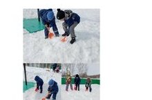 Балалар белән бергәләп ишегалдында кар таратабыз