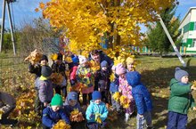 Табигатьтә алтын көз. Көз гаҗәеп матур,үзенчәлекле ел фасылы. Кем генә яратмый икән алтын көзне.. Көз үзенең матурлыгы белән таң калдыра.Балаларда ярата бу матурлыкны.Агачларны күзәтеп, матур сары яфраклар җыйдык.