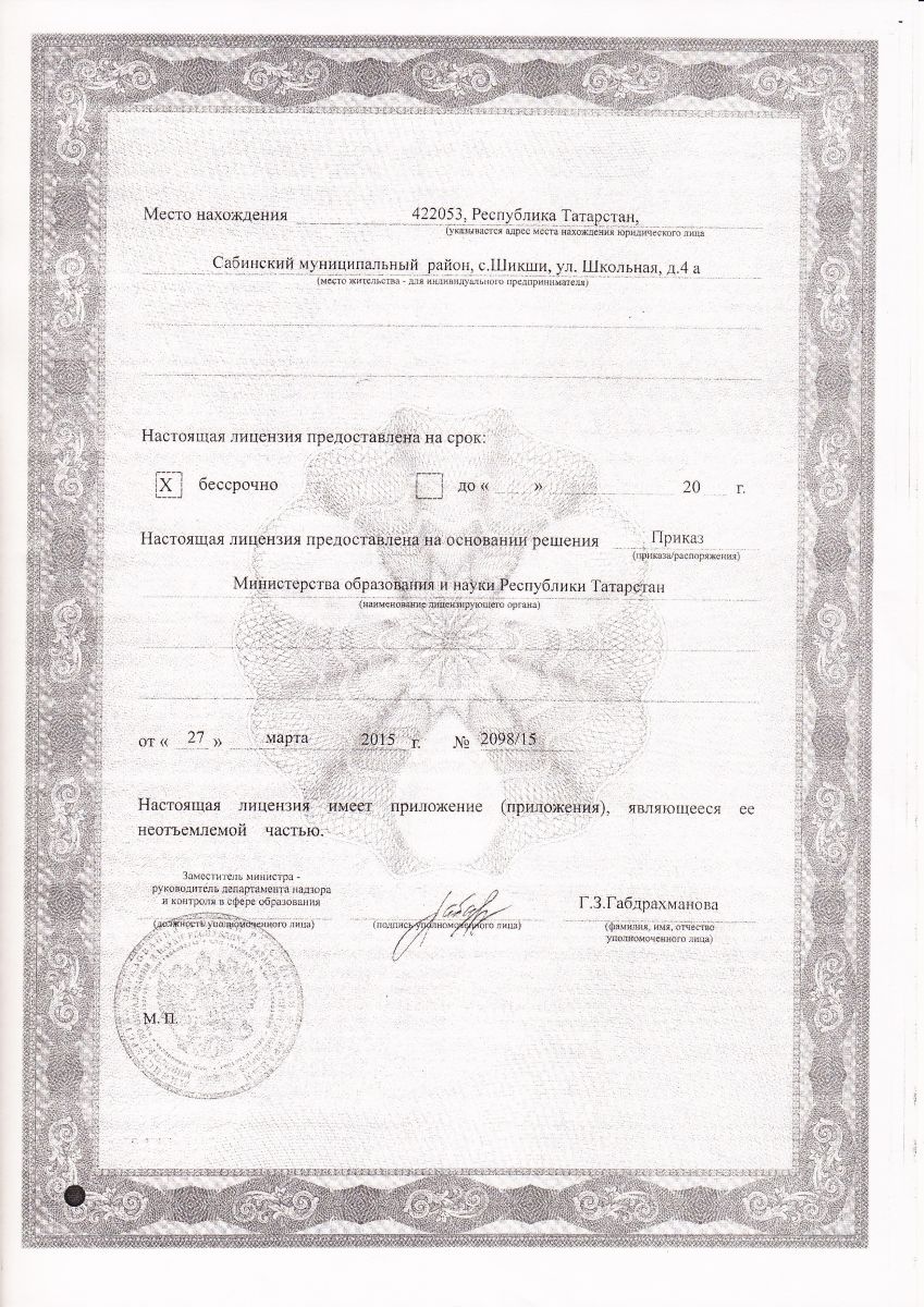 | Адрес: | 422053, Республика Татарстан, Сабинский район, с. Шикши ул.Школьная д.4а |