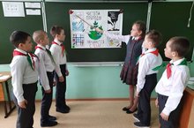 С учащимися 2-х классов была проведена деловая игра на тему "Чистота природы начинается с тебя!". Они говорили о защите природы от загрязнения.