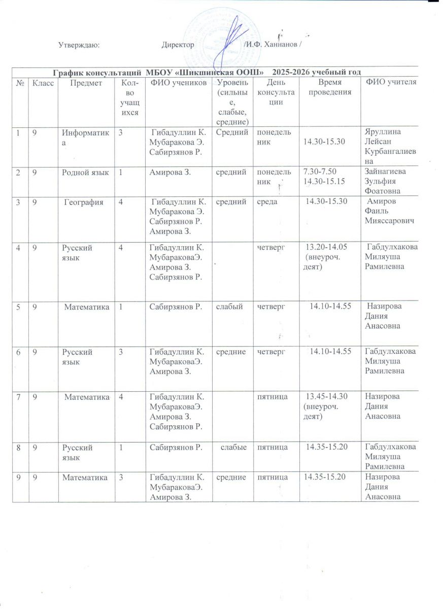План-график мероприятий по подготовке к ГИА в МБОУ «Шикшинская ООШ» в 2025-2026 учебном году.