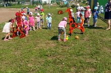 Балалар тәрбияче апалары ясаган спорт сукмагында бик теләп шөгылләнәләр