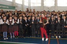 “Дөньядагы иң зур дәрес” үткәрү максатыннан Даун диагнозы булган бала-Ләйсән Зарипова бн очрашу үткәрелде.2-11 сыйныф укучылары Ләйсән Зариповага багышланган чараны бик көтеп алдылар. Башлангыч сыйныф укучылары бүләк итәр өчен хәтта йөрәк формасында открыткалар ясаганнар. 5 нче сыйныф укучысы Гарифуллина Айзиля “ Моңлану”, 7 нче сыйныфтан Шамилова Инзиля “ Дуслык” дип аталган җырлары белән бәйрәмне ямьләндерделәр. Ләйсән чыгышын таң калып, сокланып карап утырдылар. Хәтта ки соңгы чыгышы вакытында барысы бергә басып кушылып биеделәр. Искиткеч тамаша ясадылар! Афәрин!