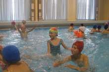 Көн яңгырлы булуга карамастан, безнең мәктәп лагере гөрләп тора. Бүген инглиз теле укытучыбыз Зилә Бәшировна музыкаль презентацияләр ярдәмендә җырлар өйрәтте, аннары бассейнга бардык.