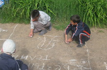 Без бүген мәктәп каршындагы асфальтка рәхәтләнеп рәсем төшердек. Без ясаган күгәрченнәр, кояш, чәчәкләр җиребезгә иминлек, тынычлык теләп торсын! Аннары пионербол ярышы булды.