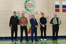 Бәйрәм белән котлап, мәктәбебез егетләре концерт программасы тәкъдим итте.Мәктәп директоры Карамов А. Р., Профсоюз җитәкчесе Фальванова А. Ф. бәйрәм теләкләре җиткерде. -
