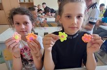 Бүгенге көнебез "Беренчеләр хәрәкәте"нә багышланды. Лагерьга йөрүче укучылар алдында район слетына барган укучыларыбыз чыгыш ясады. Яңа балалар хәрәкәте турында укучылар белән әңгәмә оештырылды. Әлеге темага асфальтта рәсем ясау укучыларның күңеленә хуш килде. Чара "Беренчеләр хәрәкәте"нең флешмобы белән тәмамланды.
