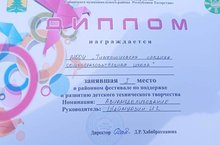 25 май көнне районда техник иҗат фестивале булып үтте.Мәктәбебез "Авиамоделирование" номинациясендә I урынны яулады. Ганиев Нияз (II урын), Гарипов Илнур( I урын) ярышларда сынатмадылар. Аларны, җитәкчеләре Илнур Корбановичны, команданы чын күңелдән котлыйбыз, рәхмәт белдерәбаз!
