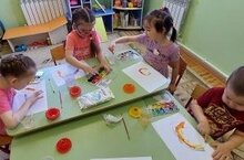 Во вторник было проведено игровое упражнение "Здравствуй друг!". Дети сделали своими пальчиками "Дружную радугу".