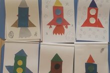 Бүгенге шөгыльдә балалар белән галәм турында сөйләшүне дәвам иттек һәм космик корабльлар кисеп-ябыштырдык.