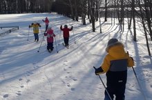 Балалар физкультура эшчәнлегендә чаңгы шудылар, чаңгы белән борылу күнегәләрен үзләштерделәр һәм төрле хәрәкәтле уеннар уйнадылар.