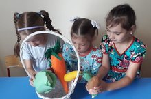 Балаларда үзара дустанә мөнәсәбәтләр тәрбияләү, логик фикерләү, уйлау сәләтен үстерү; яшелчәләр белән таныштыруны дәвам итү, аларның исемнәрен, формаларын дөрес әйтергә өйрәтү, сыйфатлары буенча яшелчәләрне табу эшчәнлеге алып барылды.