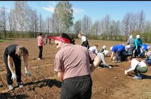 Укучылар һәм укытучыларыбыз мәктәп бакчасында кишер,суган һәм чөгендер утырттылар.