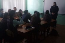 Инспектор по делам несовершеннолетних Котдусова М.И.проводила беседу с учащимися 8-9 классов о предотвращении правонорушений подростков.Рассказывала разные истории. Учащиеся задавали интересующие их вопросы.