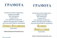 Республика күләмендә уздырылган "С чего начинается Родина" конкурсында катнашып, балаларыбыз дипломнар белән бүләкләнде. Алга таба да уңышлар телибез.