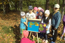 Балалар тәрбияче апалары белән экскурсиягә чыктылар. Көзге табигатьтәге үзгәрешләрне,тирә-юньне игътибар белән күзәттеләр. Үзләре җыйган төрле төстәге яфраклардан аппликация ясадылар.Балалар экскурсиядән бик канәгать калдылар.