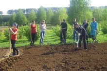 Укучылар дәрестән тыш вакытларда мәктәп яны тәҗрибә участогында эшләргә дә вакыт табалар. Бу көннәрдә алар бик тырышып утырту өчен җир әзерләү белән мәшгуль: казыйлар, черемә кертәләр, тырмалыйлар. Бары тик хезмәт куеп кына зур уңыш җыеп алырга мөмкин икәнен һәр бала да белә.