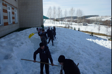 10 нчы апрель көнне мәктәбебездә язгы өмә үткәрелде. Кыш көне кар күп яву сәбәпле, мәктәп тирәсендә җыелган кар өемнәре укучылар һәм укытучылар тарафыннан таратылды.