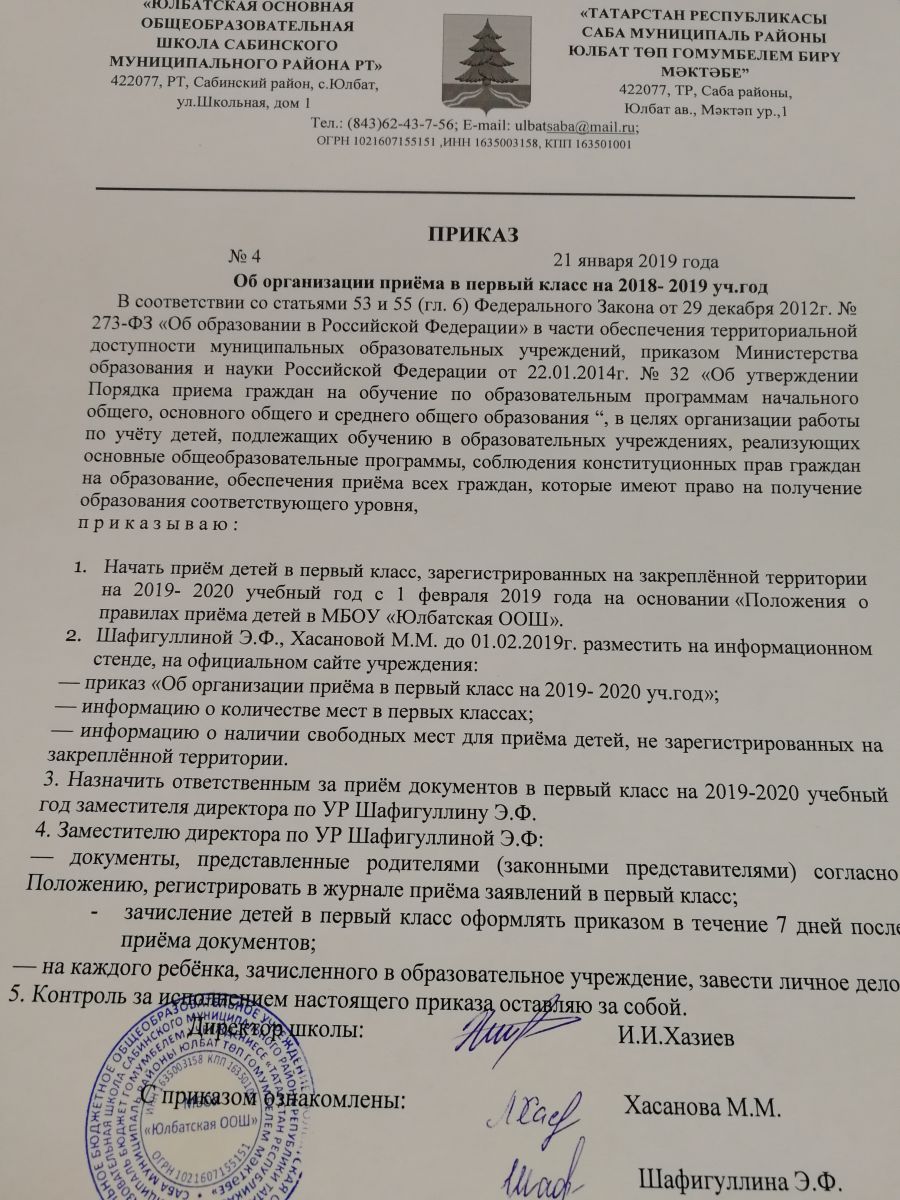 С "Приказом о порядке приема" можно ознакомиться на сайте школы
