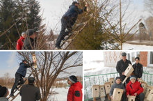 Сегодня учащиеся под руководством учителя технологии Галимова И.М. развесили все изготовленные скворечники на деревьях в школьном саду.