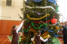 Сегодня в спортивном зале школы установили и нарядили красавицу лесную Ёлку. Её аромат распространился по всей школе и создал предпраздничное настроение.