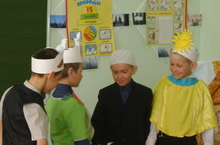 В рамках недели начальных классов были подготовлены инсценировки произведений Габдуллы Тукая. Инсценировки подготовили учащиеся начальных классов и представили их воспитанникам детского сада "Милешкэй". Детишки с воодушевлением смотрели представления.