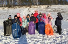 Сегодня основным событием дня было катание на санках с горки.