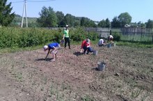 В самос разгаре лето. На пришкольном участке - трудовые будни. Ученики поливают цветы и овощные культуры, пропалывают грядки.