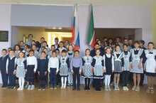 Право поднять государственные флаги РФ и РТ было предоставлено ученикам 8 класса.