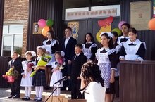 Нарядные ученики и ученицы с пестрыми букетами цветов, учителя и родители заполнили школьный двор. Звучит музыка, и все классы строятся на школьном дворе. Все застыли на торжественной линейке под звуки гимна России. Всё наполнено торжеством и гордостью, что ты частичка этого действа, этого великого праздника Дня Знаний. Ведь знание каждого из нас – это будущее каждого из нас, это будущее страны. Торжественная линейка объявляется открытой. По традиции первыми представляют малышей-первоклассников, их в этом году 5 . Директор школы и гости поздравили учащихся школы с новым учебным годом, отметив, что учение - нелегкий, но радостный и увлекательный труд. Пусть новый учебный год станет для всех ярким и плодотворным, пусть будет наполнен творчеством, интересным и полезным общением, духовно, интеллектуально обогатит и ребят, и их педагогов.
