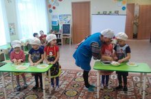 Воспитанники старшей группы стали участниками викторины «Юные повара», в которой не только проявили свои знания о важной профессии повара и разновидностях продуктов питания, но и попробовали себя в качестве шеф-поваров, блистательно справившись с заданием под названием «Борщ» по приготовлению всем знакомого супа.