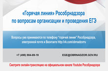 Телефон «горячей линии» Рособрнадзора +7 (495) 984-89-19 продолжит свою работу в течение всего периода экзаменов и обработки результатов ЕГЭ, специалисты ведомства будут отвечать на поступающие вопросы. -