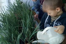 Каждый год воспитанники детского сада сами сажают и ухаживают за зеленью на подоконнике.