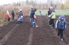 Укучылар мәктәп бакчасына сарымсак утырттылар.Бергә-бергә эшләве бик күңелле булды
