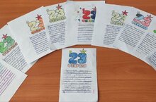Алда торган «Ватанны саклаучылар көне " бәйрәме алдыннан балалар үз куллары белән котлау открыткалары ясадылар һәм солдатларыбыз өчен котлау сүзләре яздылар. Еасһәрбер бала котлауга үз җанының бер өлешен салды. Хәтта иң гади открытка да, ләкин саф йөрәктән ясалган һәм балаларның тигез булмаган язуы белән имзаланган, солдат йөрәкләрен хәзерге авыр шартларда җылытачак.