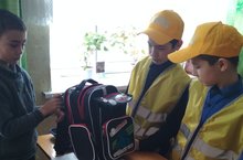 Сегодня участники отряда ЮИД проверили у ребят светоотражающие элементы,напомнили правила дорожного движения./Бүген ЮИД отряды членнары укучыларның киемнәрендә яки сумкаларындагы яктылык кайтаргыч элементларны тикшереп чыктылар.Шулай ук юл йөрү кагыйдәләрен дә исләренә төшерделәр.