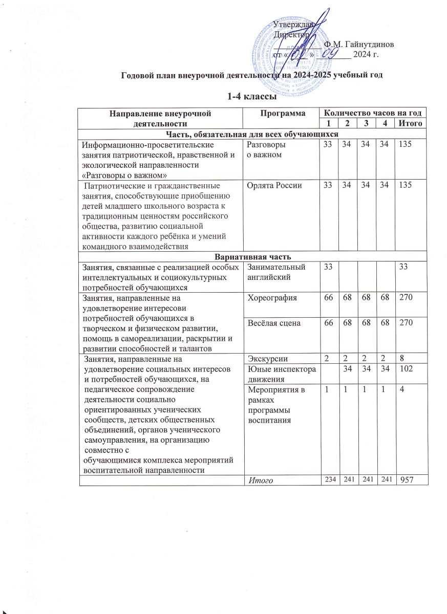Годовой план внеурочной деятельности на 2024-2025 учебный год 1-4 классы