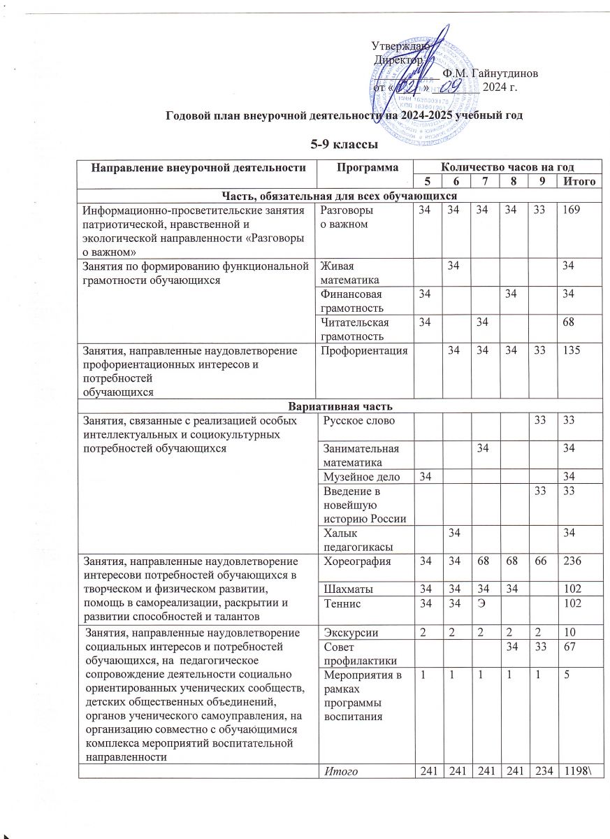Годовой план внеурочной деятельности на 2024-2025 учебный год 5-9 классы