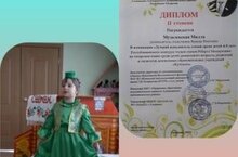 Наша воспитанница Музалевская Милла награждена Дипломом II степени в номинации «Лучший исполнитель стихов среди детей 4-5 лет» Республиканского конкурса чтецов стихов Роберта Миннуллина на татарском языке среди детей дошкольного возраста, родителей, педагогов дошкольных образовательных учреждений «Күчтәнәч»